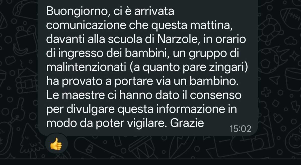 Un messaggio diffuso nelle chat e sui social nelle ultime ore ha fatto scattare preoccupazione a Narzole, parlando di un presunto tentativo di rapimento davanti alla scuola del paese durante l’orario di ingresso degli alunni. La notizia, rapidamente condivisa tra famiglie e cittadini, ha generato allarme e richieste di chiarimento.