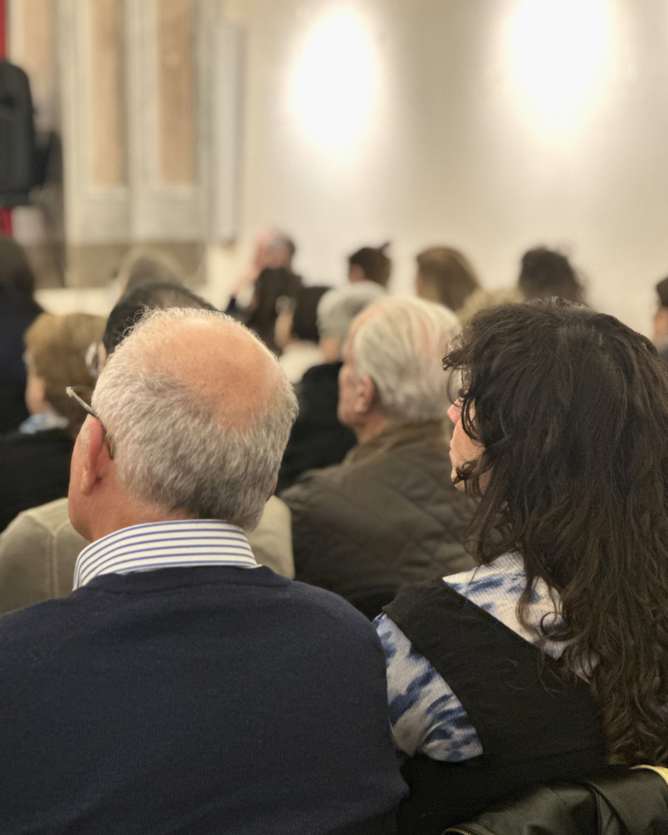 Il cuore del suo intervento è stato il “rovesciamento dello sguardo”: un invito a cambiare prospettiva per comprendere il presente. “Quello che si vede è nutrito da quello che non si vede”: un pensiero che ha attraversato l’intera serata, evocando esempi potenti come le tavole dell’altare della Cattedrale di Cracovia, più ricche sul retro che sul fronte, a ricordare che la parte invisibile custodisce spesso la vera sostanza.