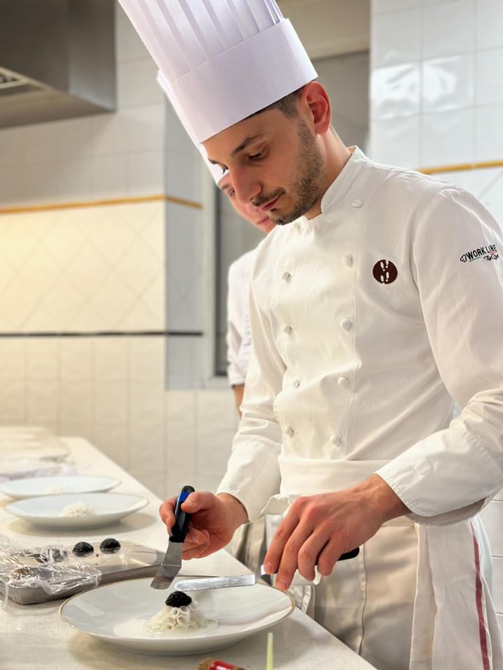 “Gusto Montagna è un invito a cambiare prospettiva: portare la nostra cucina in alta quota significa ascoltare il luogo, il clima, i ritmi della neve e trasformarli in un piatto che resta fedele alla nostra identità. Mi piace l’idea di un dialogo tra territori: la montagna ti chiede essenzialità, precisione e calore, e questo è un linguaggio che sento molto mio” ha affermato Fabrizio Mellino. “Sono sempre felice di poter trasmettere il lavoro che facciamo a Nerano. Questo mi permette di tornare a casa con un bagaglio di ispirazioni sempre maggiore” “Per ovvi motivi, conosco meglio il mare che la montagna. Da qui la scelta, per la serata, di portare un assaggio di Costiera, con un menu che incarna appieno la mia idea di cucina”.