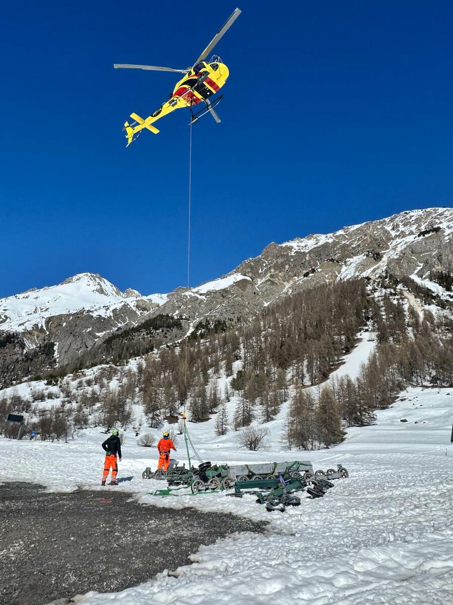 Proseguono ad Argentera i lavori alla seggiovia in vista della rimessa in funzione prevista per l'estate. La fine lavori del cantiere è infatti previsto per il 31 luglio.