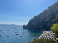 Proseguendo in battello, si arriva a Positano. L’immagine più diffusa e iconica della Costiera. Dal mare si presenta come una diagonale netta: una sequenza ordinata di volumi, tra rosa pallido, pesca e bianco. Terrazze sovrapposte e balconi fioriti costruiscono un’immagine riconoscibile, modellata sul profilo del promontorio. L’impatto visivo è forte e coerente. L’economia locale è fortemente orientata all’accoglienza: boutique, hotel panoramici e ristoranti affacciati sul mare testimoniano una trasformazione che ha consolidato la vocazione turistica del paese. La bellezza è organizzata e resa esperienza strutturata.