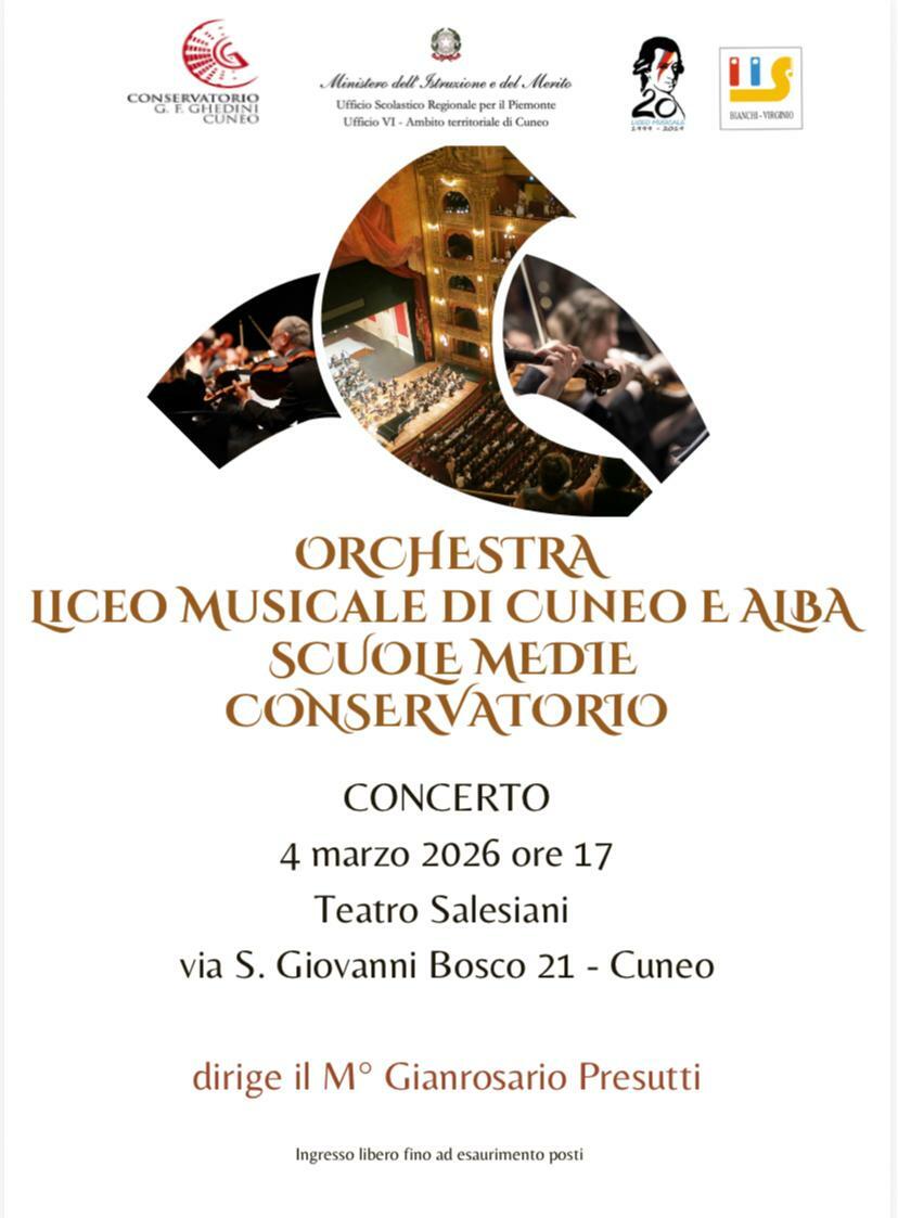 Mercoledì 4 marzo, alle ore 17.00, il Teatro dei Salesiani (Don Bosco) di Cuneo ospiterà il primo appuntamento dell’Orchestra Verticale, un progetto ambizioso che mette in dialogo scuole di ogni ordine e grado.