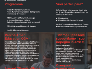 Domenica 22 marzo 2026 si preannuncia come una giornata speciale, di quelle che uniscono sport di altissimo livello, passione collettiva e un gesto concreto di solidarietà. Fashion Travel e BMC, in collaborazione con Giampaolo “Pippo” Ricci, capitano simbolo dell’EA7 Emporio Armani Olimpia Milano, hanno organizzato un evento unico per celebrare i 90 anni della storica società milanese e, soprattutto, per sostenere con forza il progetto Amani Education ODV.