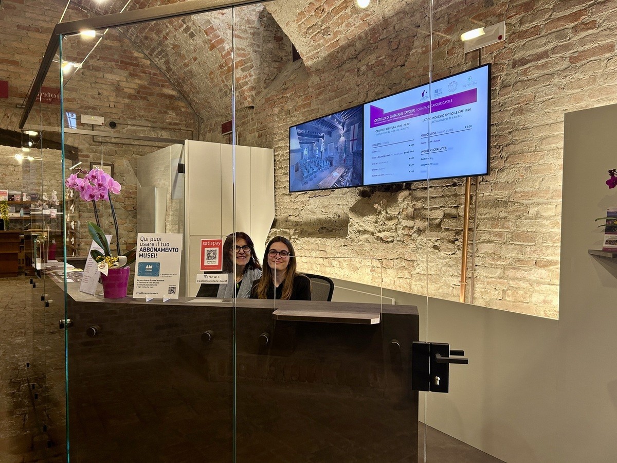 Un nuovo punto di accoglienza e informazione turistica per i visitatori, mentre proseguono i lavori di riqualificazione della piazza sotto il maniero