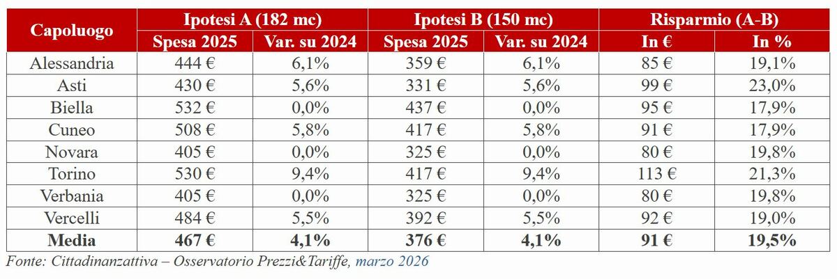 Il confronto con il dato nazionale evidenzia come il Piemonte si collochi al di sotto della media italiana, ferma a 528 euro a famiglia, con un incremento del 5,4%. A livello nazionale, il capoluogo più caro resta Frosinone con 973 euro annui, mentre Milano è il più economico con appena 203 euro.