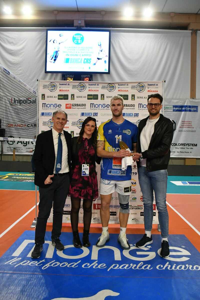Il post-gara. Al termine del match, come MVP è premiato Luca Rossato, top-scorer con 17 punti, a cui vengono consegnate la consueta maglia offerta da Volley & Sport e una bottiglia di succo di mele offerta dall’Azienda agricola Dutto. “Siamo molto felici di essere riusciti a portare in campo tutta l’energia che avevamo accumulato per questa gara-1. Era molto importante ma siamo stati bravi a giocare di gruppo e a chiudere i conti. Ora testa a gara-2, perché la serie è ancora lunga” – le parole dell’opposto biancoblù.