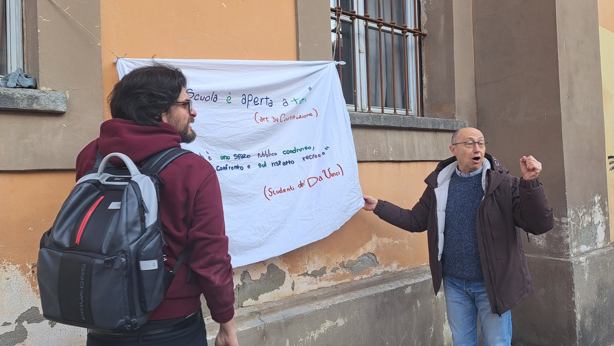 Ad Alba il dibattito sul ruolo della scuola esce ancora una volta dalle aule e si rende visibile nello spazio pubblico. Nella mattinata di oggi, sulla facciata del liceo “Leonardo da Vinci”, è stato esposto uno striscione realizzato da studenti e docenti, come risposta agli episodi delle scorse settimane legati alla presenza di messaggi firmati da Azione Studentesca davanti ad alcuni istituti superiori cittadini.