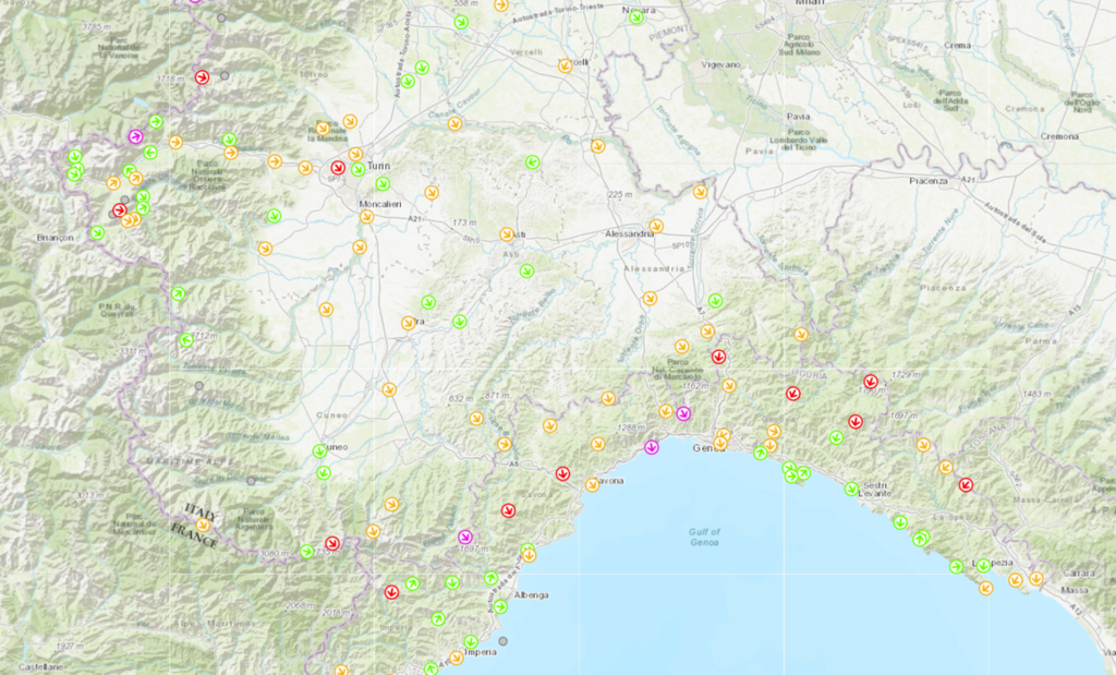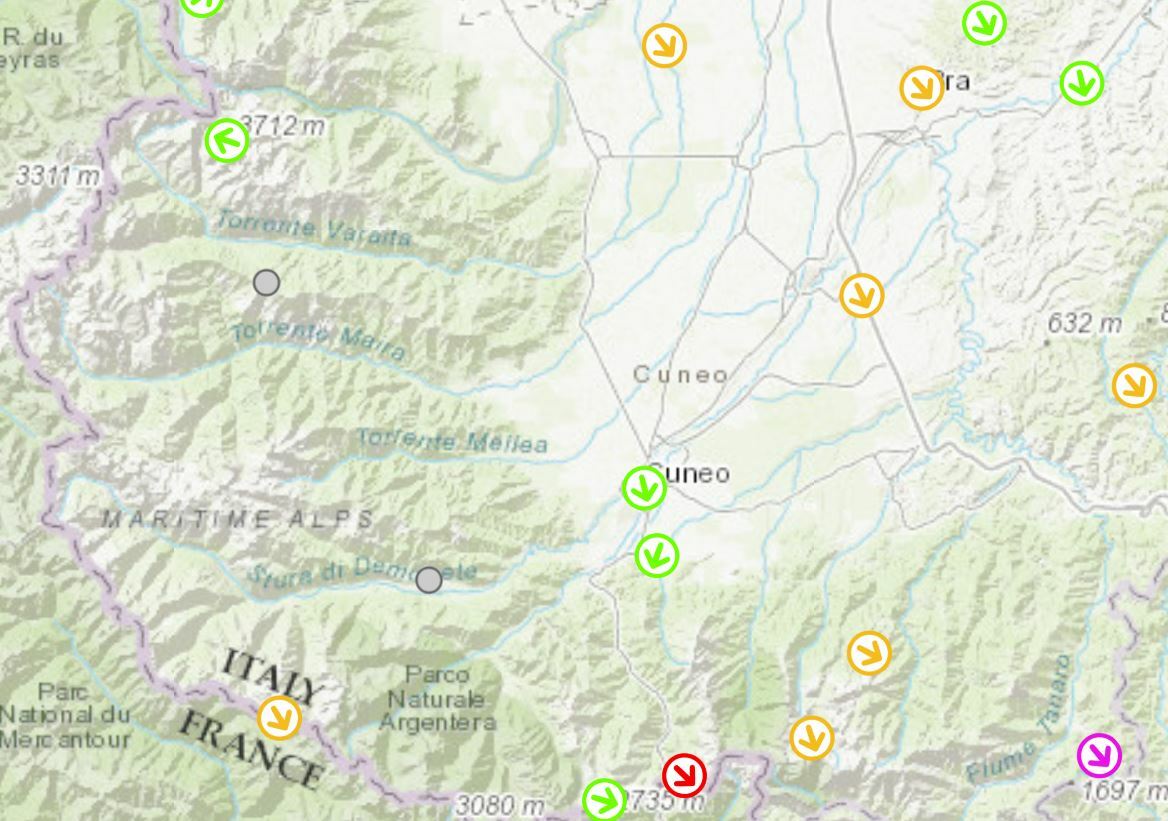 La stazione di Colle San Bernardo, nel territorio di Garessio a 980 metri di altitudine, ha registrato questa mattina alle 11 un vento costante di 67,7 km/h da nord-ovest, con raffiche fino a 102,2 km/h. La punta massima è stata toccata nella notte, quando le raffiche hanno raggiunto i 111,6 km/h, superando ampiamente le previsioni che indicavano punte di 70-80 km/h. Al Rifugio Mondovì la massima notturna ha toccato gli 80,6 km/h, mentre a Limone Pancani si sono registrati 63 km/h.