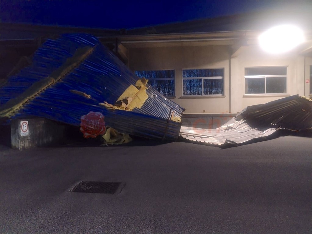 Le raffiche hanno infatti scoperchiato parte del tetto di un capannone della ditta Mauli, azienda specializzata nella produzione di abbigliamento per bambini.