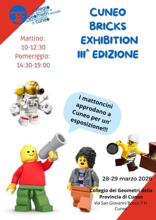 Grande partecipazione per la “Cuneo Bricks Exhibition – III^ Edizione”, l’evento dedicato al mondo dei mattoncini che si è svolto il 28 e 29 marzo 2026 presso la Sala Mostre del Collegio dei Geometri della Provincia di Cuneo.