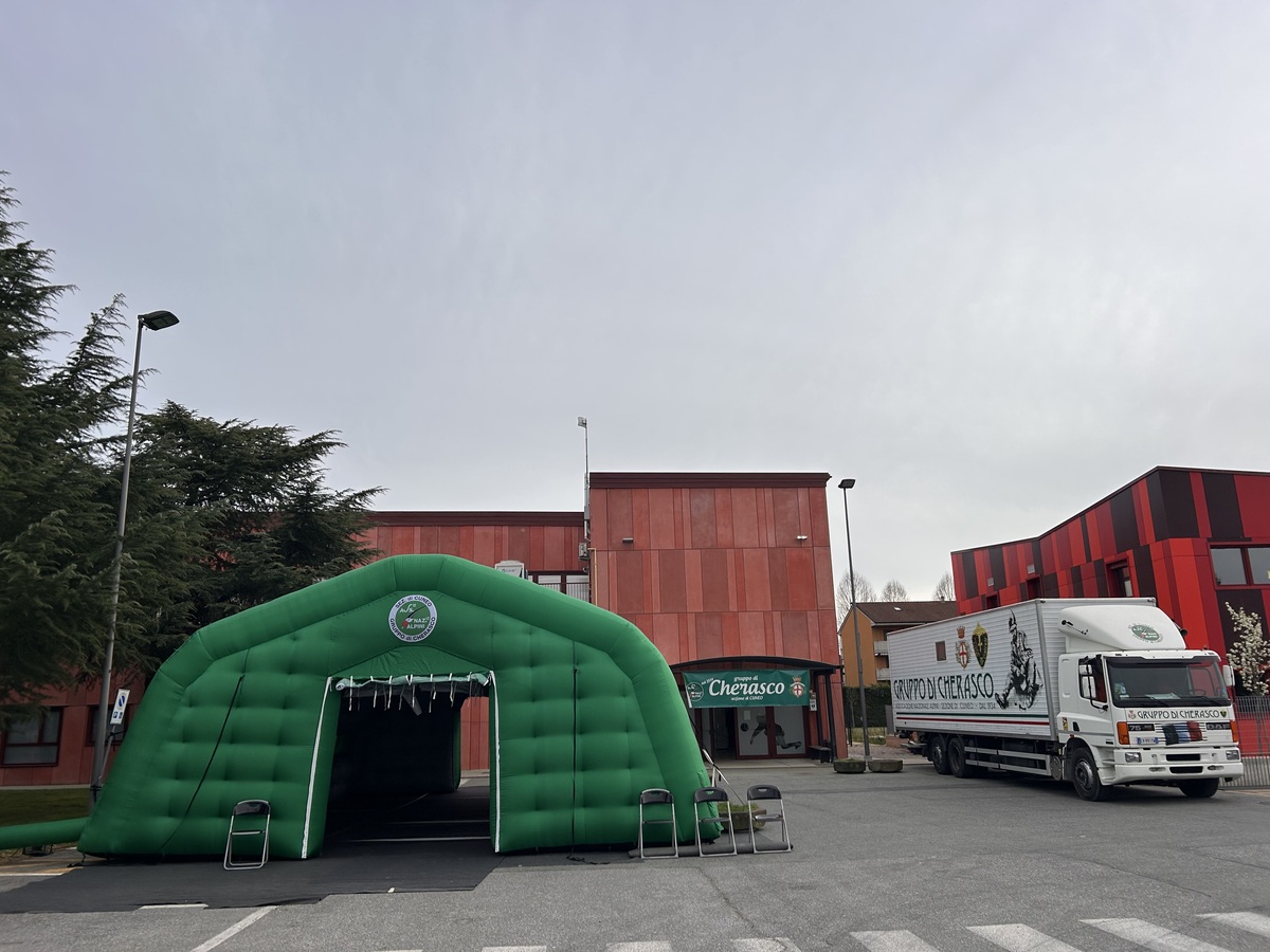 Nel corso dell’evento è stata inoltre presentata ufficialmente la nuova tensostruttura gonfiabile del gruppo Alpini di Cherasco, acquistata in parte con fondi propri e in parte grazie a un bando regionale. Una dotazione importante che rappresenta un investimento concreto per il futuro delle attività del gruppo e per il supporto alla comunità.