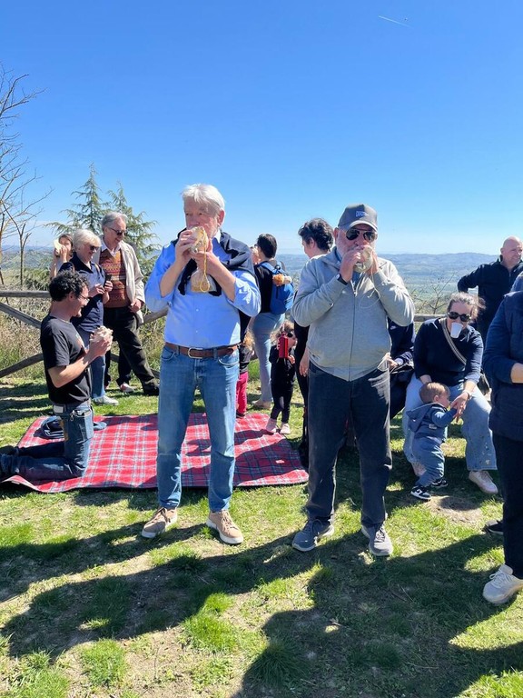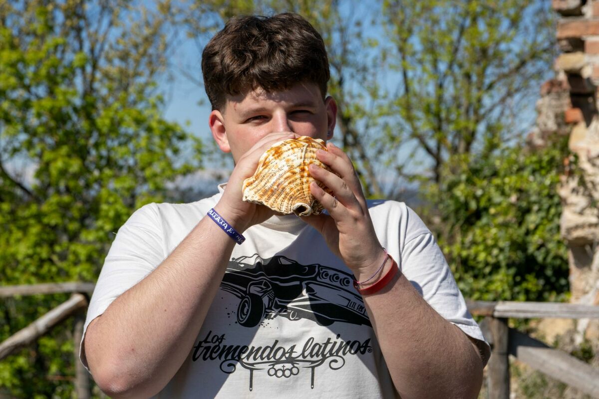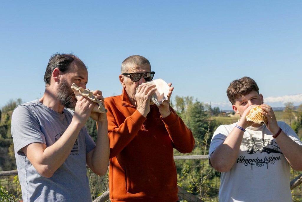 Anche quest’anno a mezzogiorno del sabato santo niente 'baudetta'. Dalle colline del Roero si sono diffuse le frequenze basse e cupe delle conchiglie marine, suonate da decine di persone (anche tanti giovani), per mantenere vivo un rito riscoperto alcuni anni fa, una tradizione che voleva le campane tacere e le conchiglie annunciare l’ora di tornare a casa dai campi per il pranzo.