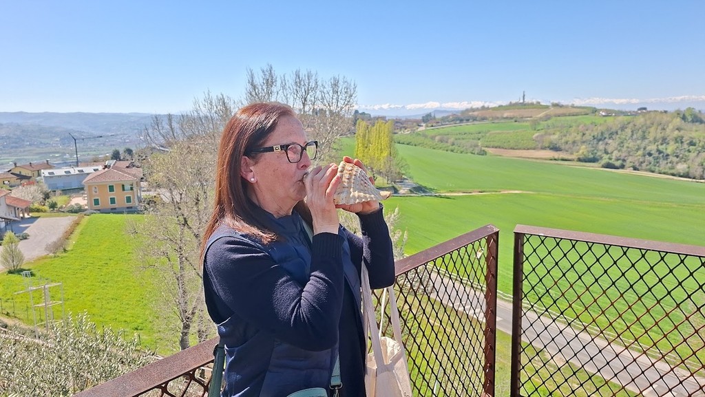 Elio Allerino, castagnitese DOC, è uno dei 'suonatori di conchiglie' più esperto: “Nel 1977 appena tornato da militare, con alcuni amici riprendemmo a suonare le conchiglie e di anno in anno siamo riusciti a coinvolgere sempre più persone. Oggi a Castagnito quasi tutte le famiglie possiedono una conchiglia: io ne ho una che usava già mio nonno. In realtà bisogna fare un po’ di pratica per farla suonare. Inizialmente le suonavamo anche il venerdì e per tre volte al giorno, mattino, mezzogiorno e sera. A Castagnito ci ritroviamo sul Colle del Castelverde, altura che sormonta il paese e che ospitava un maniero e suoniamo da lì: anche gli altri paesi hanno individuato un luogo idoneo, così la tradizione ha ripreso piede”.