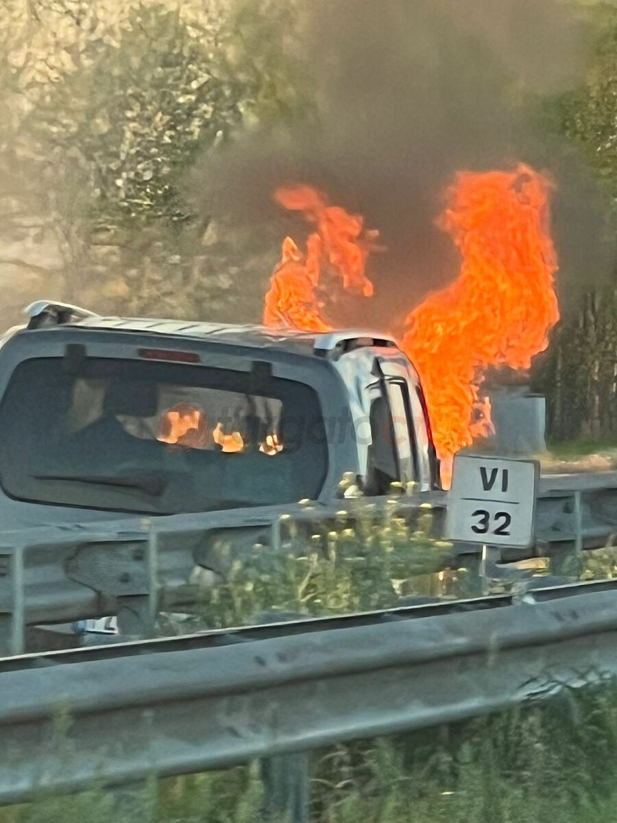 Sul posto stanno lavorando due squadre dei vigili del fuoco, impegnati a spegnere le fiamme e a mettere in sicurezza il tratto autostradale.