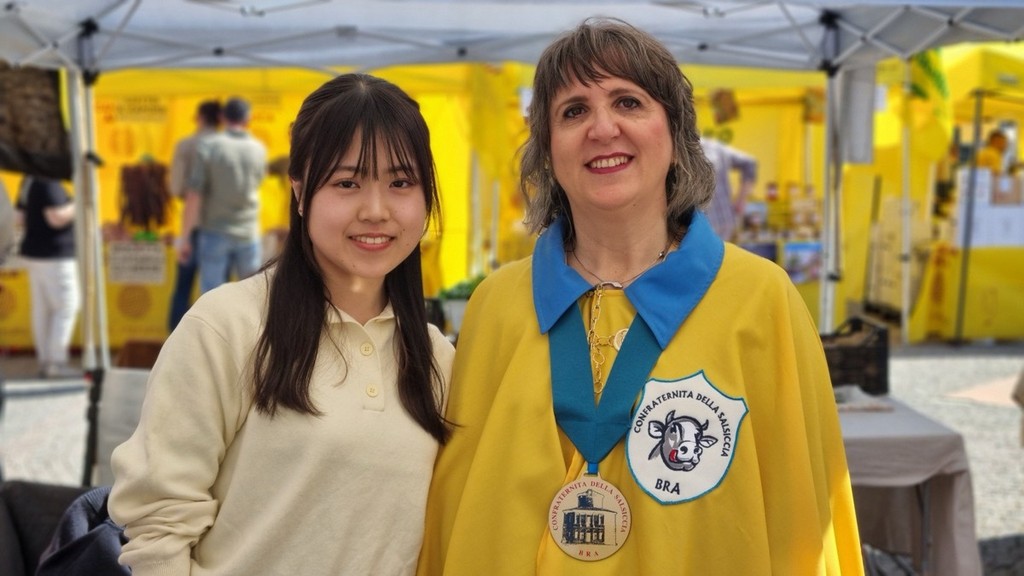 Persino una visitatrice giapponese ha fotografato ogni particolare della loro uniforme. Dal collare dove sono appuntate le spillette collezionate in occasione di gemellaggi con altre confraternite gastronomiche, fino al medaglione con l’effigie della Zizzola, simbolo di Bra, passando dal distintivo logo in cui si vede un vitello, ingrediente principale della prelibatezza locale.