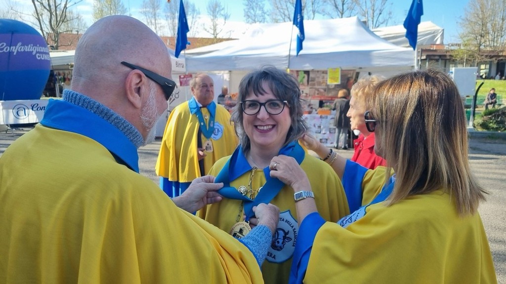 Infine la foto di rito con il sindaco Gianni Fogliato, le autorità municipali ed i rappresentanti di categoria per la Confraternita, che proprio il 6 aprile ha battezzato l’ingresso tra le sue fila di una nuova socia. Grandi emozioni per Silvia Gullino, giornalista e insegnante braidese, che ha vestito i paludamenti ufficiali, culminati con l’imposizione del medaglione da parte del Gran Maestro.