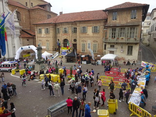 La manifestazione, che ha preso il via alle 10.15 da piazza Caduti per la Libertà, si è snodata tra cielo grigio e temperature in calo, ma nulla ha fermato la carica dei circa 3800 iscritti, messaggeri di pace, convivenza, sostenibilità ambientale. Tutti salutati alla partenza dal sindaco Gianni Fogliato.