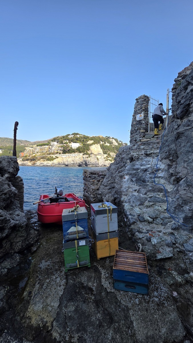 “Le api le ho spostate con il furgone, poi a mano, poi in barca. Dal porticciolo fino a metà isola, cercando un punto riparato dal vento. Le abbiamo sistemate lì, al sicuro”, spiega.
