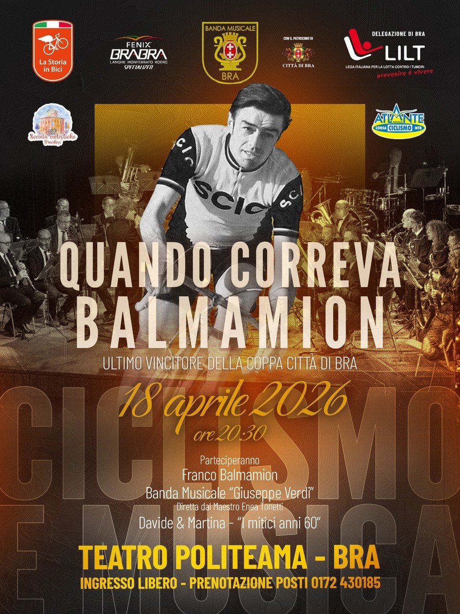 Franco Balmamion sarà l’ospite d’onore della serata organizzata a Bra sabato 18 aprile alle ore 20.30 presso il Teatro Politeama dalla Associazione “La Storia in Bici” per celebrare i fasti e l’epopea del ciclismo all’ombra della Zizzola.