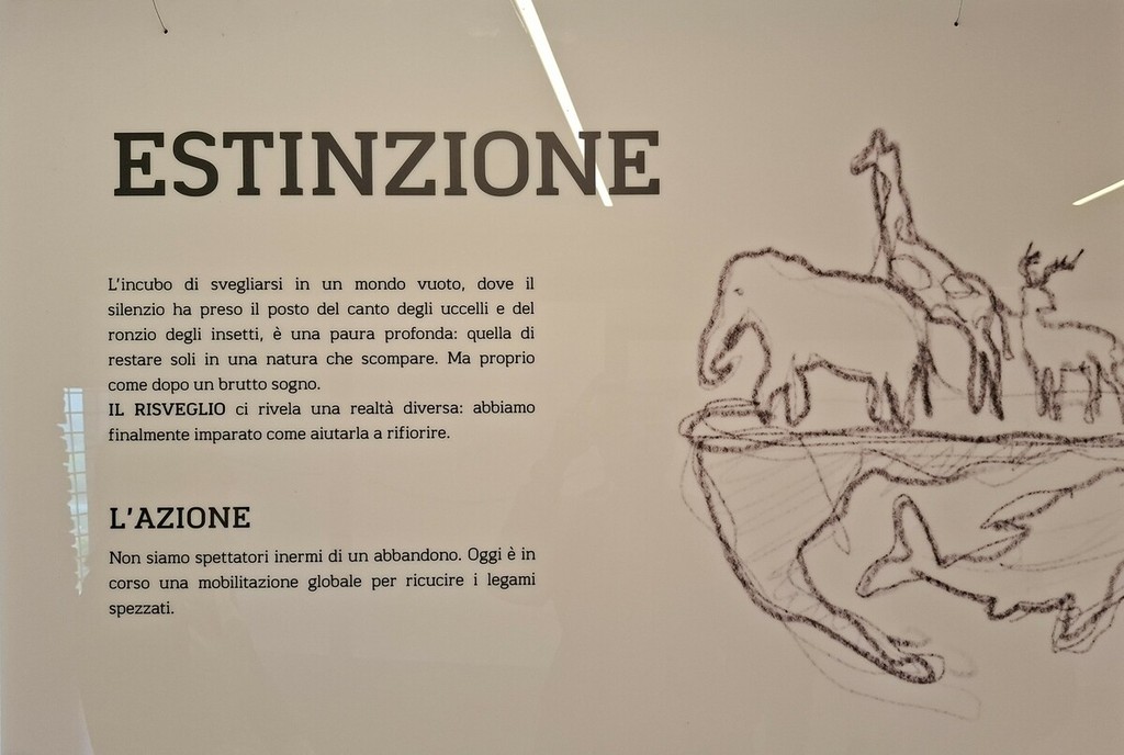 L’esposizione propone un percorso che unisce arte e riflessione ambientale, accompagnando il visitatore in un viaggio tra paure, consapevolezza e possibilità di cambiamento. Il percorso si sviluppa in tre momenti: una prima parte più oscura che richiama gli incubi e i timori legati alla crisi ambientale, una seconda parte dedicata al risveglio e alla presa di coscienza e una terza che invita all’azione e alla responsabilità verso il futuro del pianeta.