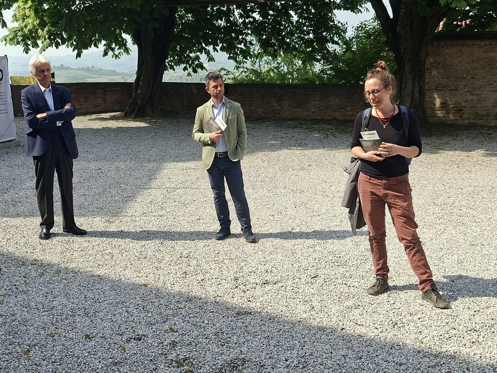 Alla presentazione per la stampa, tenuta questa mattina, erano presenti e sono intervenuti, oltre agli organizzatori e all'artista Valerio Berruti, l'assessore del Comune di Roddi ed ex sindaco Lorenzo Prioglio, l'assessore del Comune di Alba Edoardo Fenocchio e la referente per Agrion (Fondazione per la Ricerca l'innovazione e lo sviluppo tecnologico dell'agricoltura piemontese) Ariele Muzzarelli.