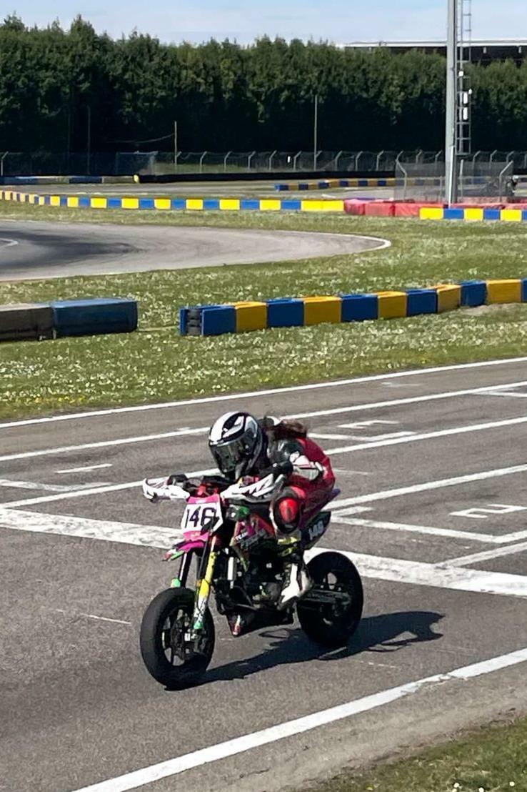 Fra#146 stava già pensando alla vittoria di categoria quando, a cinque curve dalla bandiera a scacchi è stata centrata da un avversario, incorrendo in una brutta caduta che l’ha spedita all’ospedale.