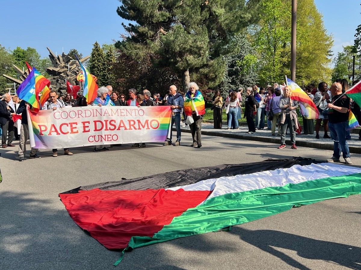 Ha preso il via alle ore 16 di oggi, sabato 18 aprile, dal Parco della Resistenza la manifestazione promossa a Cuneo per denunciare la spirale di conflitti in Asia occidentale e nei Paesi del Golfo. Il corteo ha attraversato viale Angeli, corso Giovanni XXIII, via Roma e corso Nizza con destinazione piazza Europa, ribattezzata simbolicamente dagli organizzatori “piazza Palestina”.