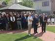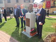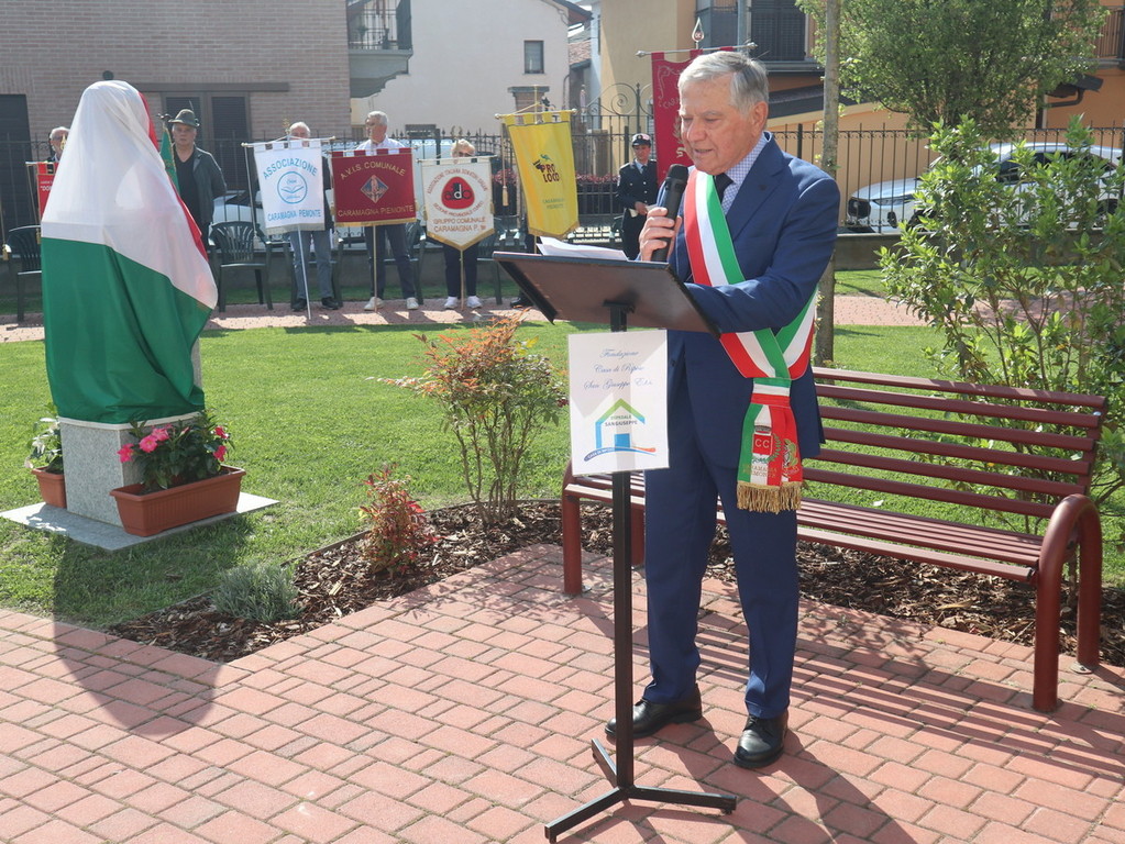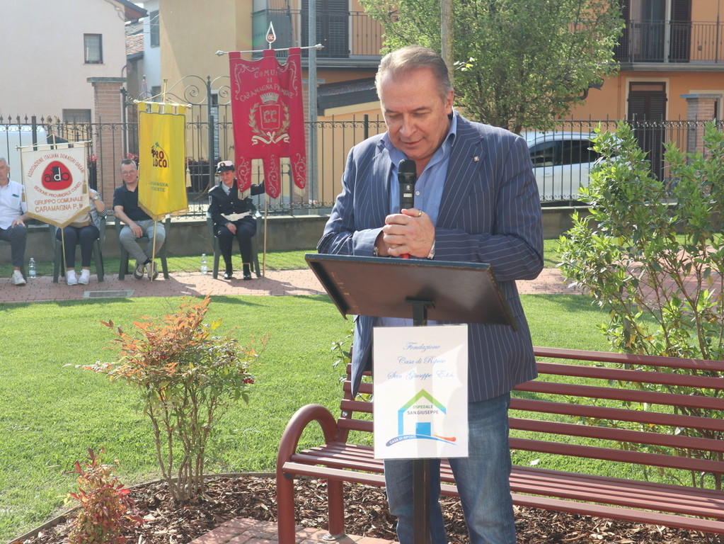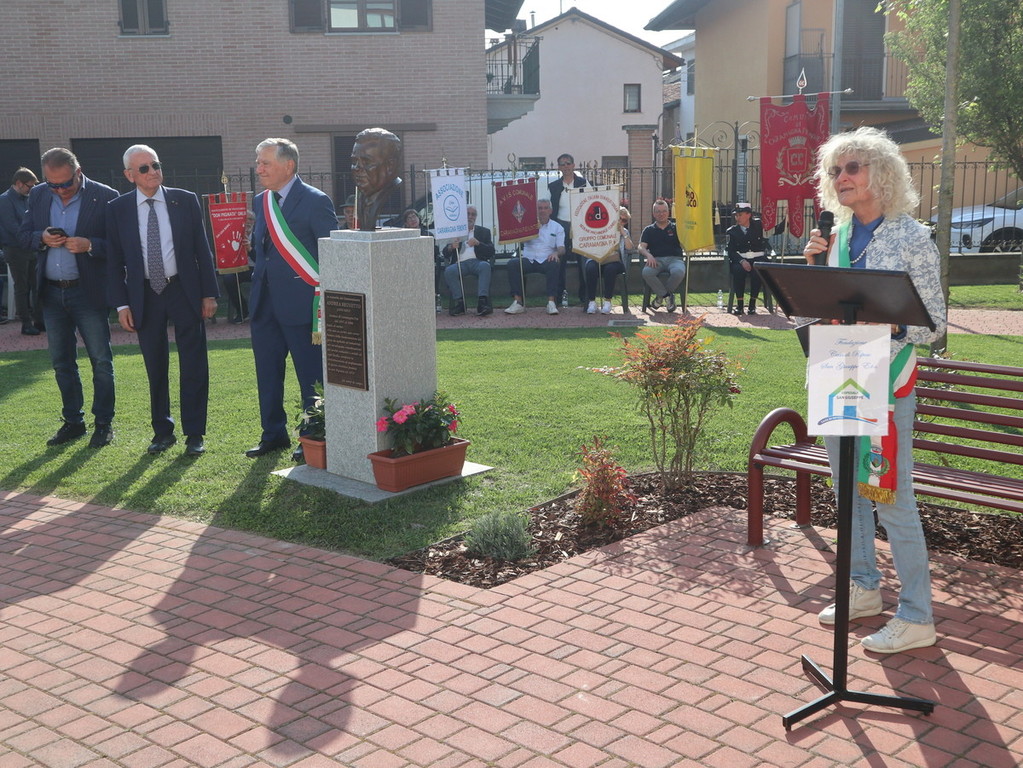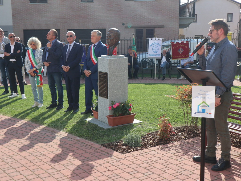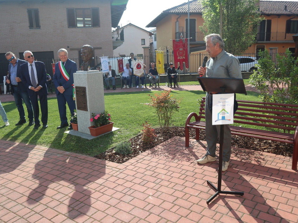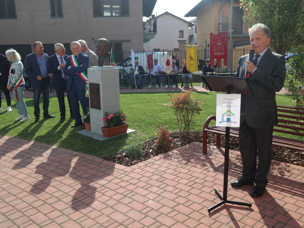 Dopo la scopertura in piazza Castello della targa commemorativa presso “Casa Brunetto”, il corteo si è recato nel giardino della Casa di Riposo San Giuseppe (guidata del presidente Luigi Bono, anche presente nella cerimonia a suo ricordo). Proprio l’rsa fu rinnovata negli ultimi anni di vita nei suoi ambienti, grazie all’opera di Brunetto. Qui si trova anche l’attuale area verde, ove è stato svelato e benedetto (con il rito da parte di don Mario Mana) il busto di bronzo realizzato dall’abile scultore e ritrattista di origini siciliane, che risiede in Liguria, Pietro Marchese, con un lavoro certosino iniziato nel 2021, a stretto confronto con coloro i quali conoscevano espressione della fisionomia ed erano depositarie di immagini storiche dello stesso ex primo cittadino.