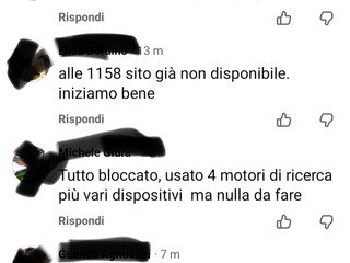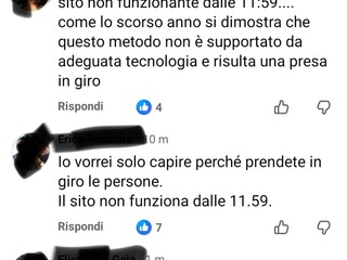 E mentre il sito è bloccato, sono decine i commenti di genitori infuriati apparsi sulla pagina facebook della Regione Piemonte, sotto il post dedicato a Vesta. La maggioranza scrive "Il sito non funziona dalle 11.59" oppure "dalle 11.58 non si apre la pagina". Un altro utente aggiunge "Tutto bloccato, usato 4 motori di ricerca più vari dispositivi ma nulla da fare". C'è poi chi attacca: "Siete andati a pranzo e vi siete dimenticati di attivare il portale?"
