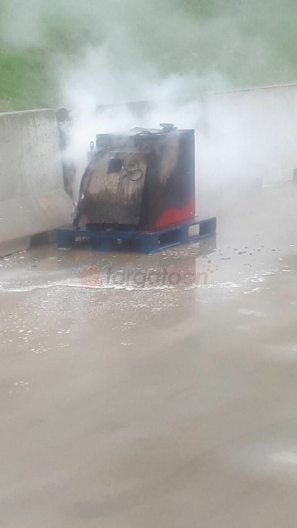 I vigili del fuoco sono quindi intervenuti sul piazzale esterno, dove hanno provveduto a spegnere le fiamme e ad allestire una vasca per il deposito della batteria, che dovrà stare immersa per diversi giorni, così da avere la certezza che le fiamme non riprendano vita.