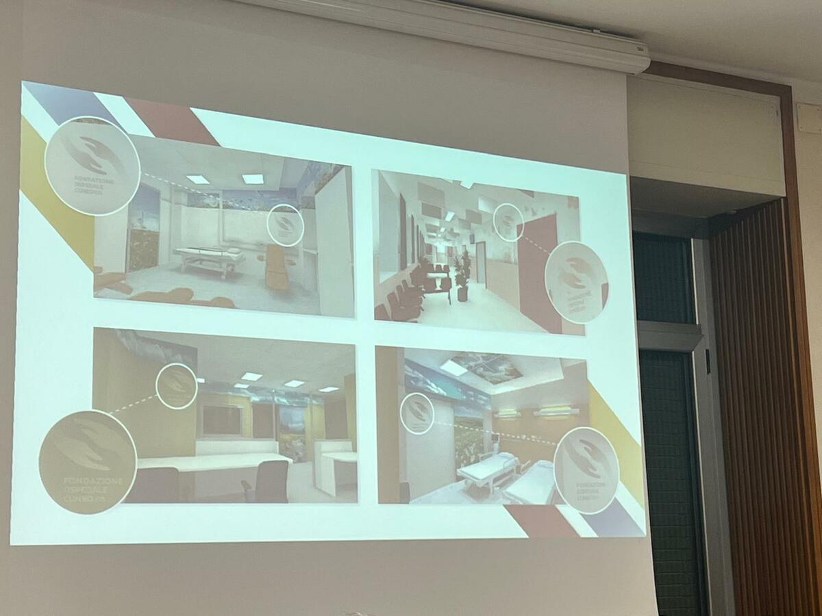 Tra gli interventi sugli ambienti, sono state illustrate le azioni realizzate presso il Day Hospital Oncologico, il Centro Salute Donna, la Medicina Nucleare, il Day & Week Surgery e il Pronto Soccorso, dove è stata realizzata la “stanza del sollievo”, pensata per accogliere pazienti e famiglie in situazioni cliniche di particolare delicatezza.