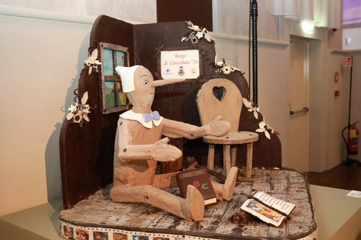 Proprio l’opera simbolo della rassegna borgarina di quest’anno, una enorme scultura in cioccolato dedicata a Pinocchio, è visibile nella mostra al Palazzo della Stella.