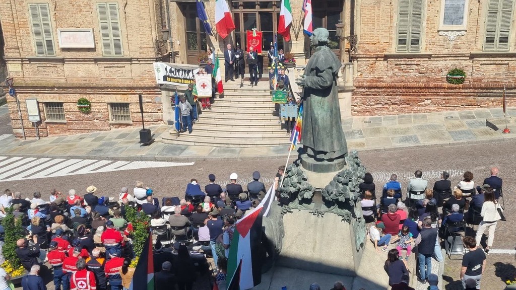 Davanti al Municipio si sono tenuti gli interventi del vicesindaco Biagio Conterno, della giovane studentessa dell’Unisg e dell’Anpi Camilla Calabrese e infine del sindaco Gianni Fogliato, concordi sull’importanza di un impegno urgente per la libertà, la giustizia e i diritti di tutti in un clima globale segnato da guerre e violenza.